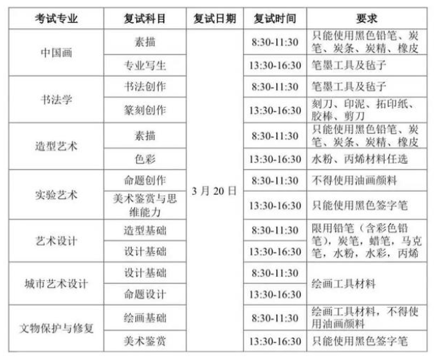 第十四条 中国画、书法学、造型艺术、实验艺术、艺术设计、城市艺术设计和文物保护与修复专业校考分为线上初试和现场复试两个环节。