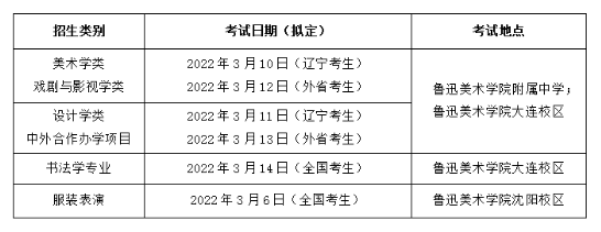 2、报考书法学专业的考生,现场考试在鲁迅美术学院大连校区进行;