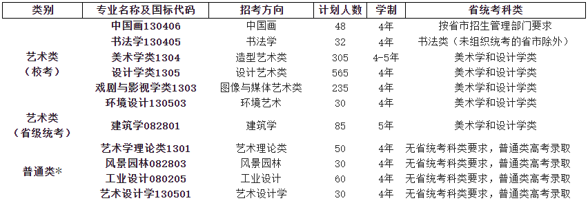 艺术学理论类专业、风景园林专业、工业设计专业、艺术设计学专业在普通类录取。
